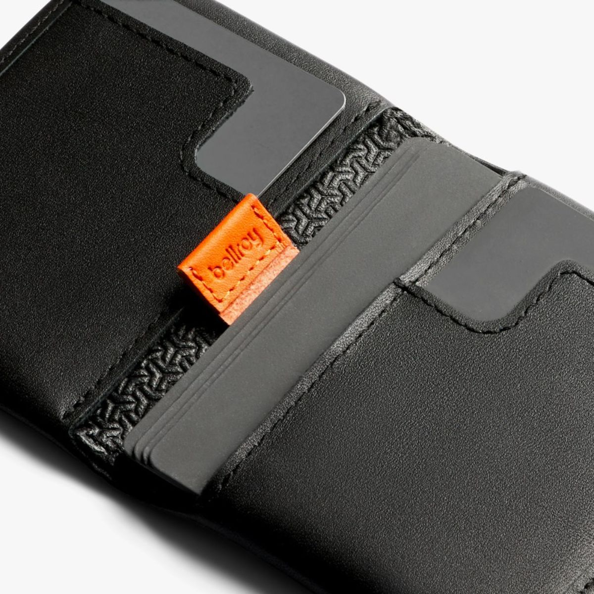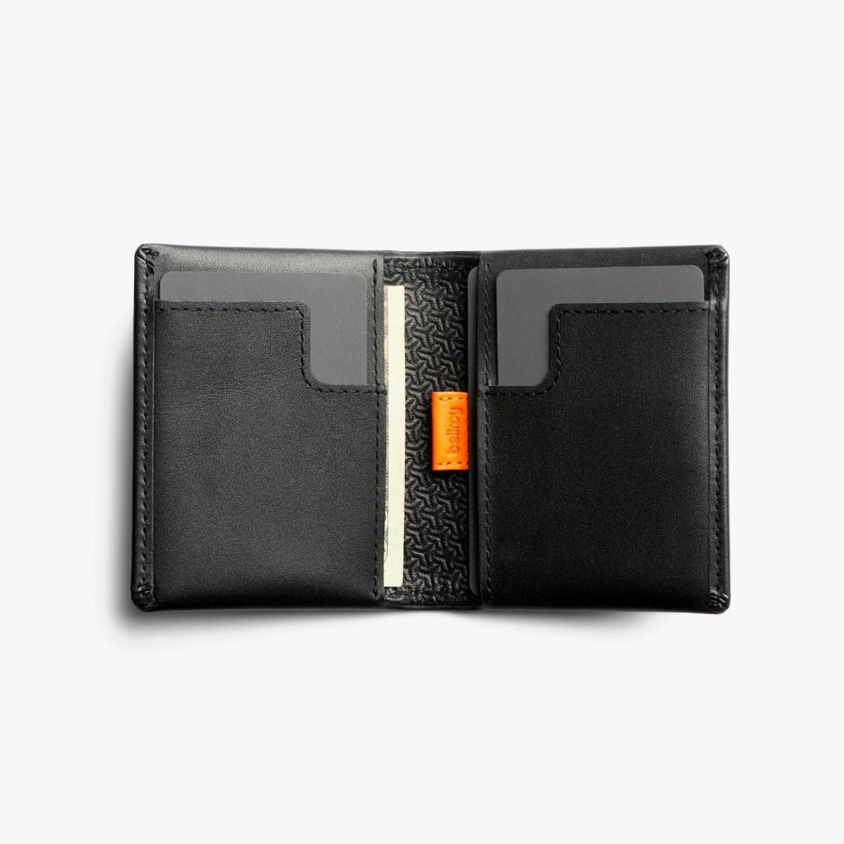 Infrequently used cards stack together to save space, and can be accessed in a flash thanks to the slim pull-tab.