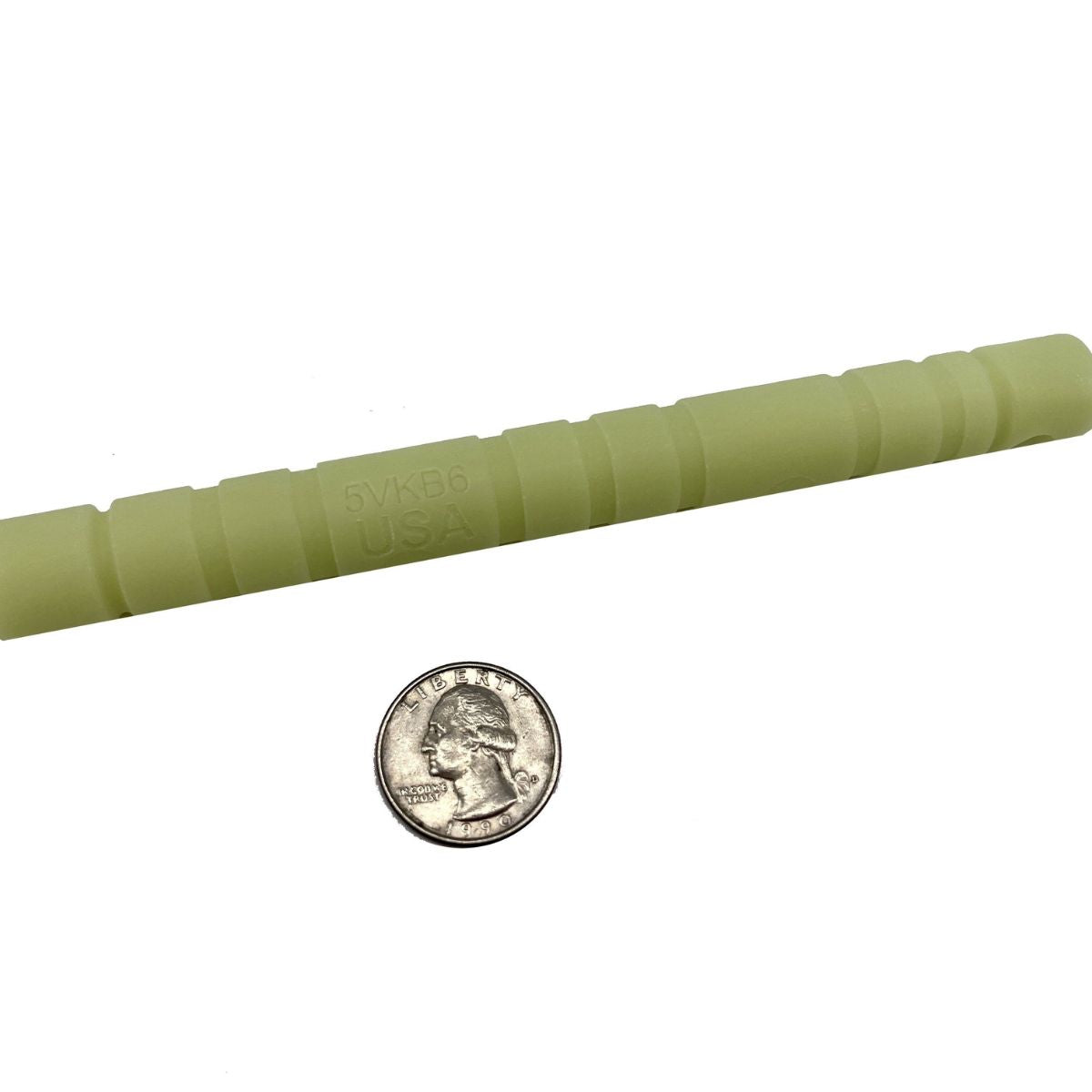 Measures 6" long and 5/8" diameter and made of super stable injection molded nylon right here in the USA.