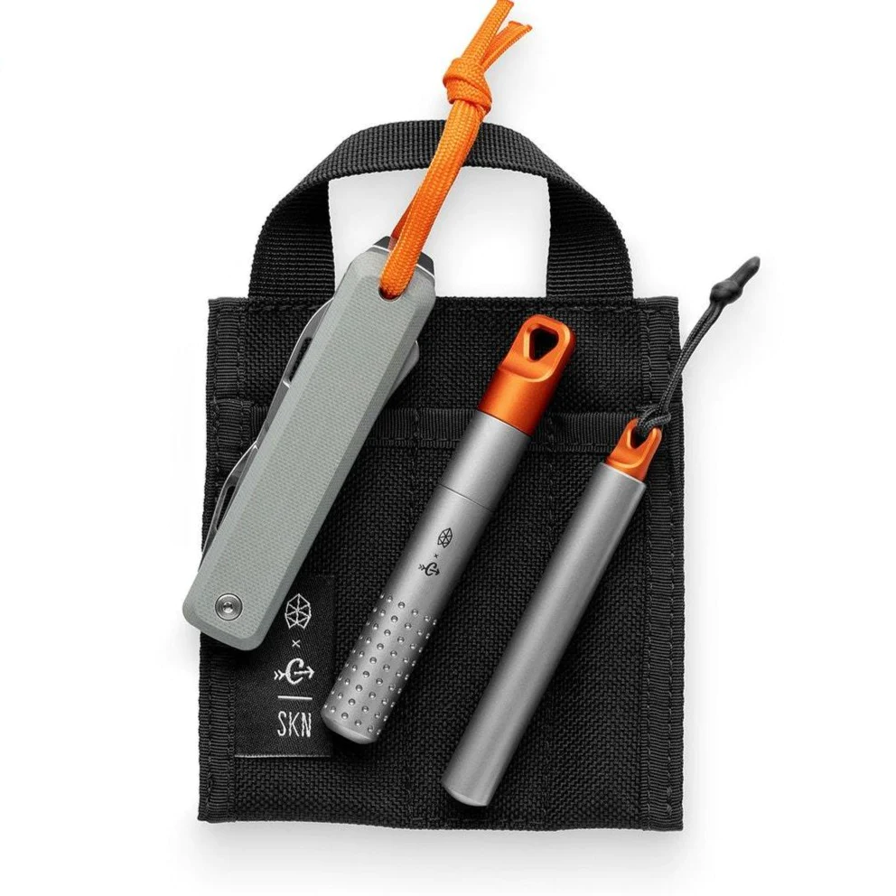 We teamed up with Skinth Solutions in Canada to help create a sheath specifically for this collection. Skinth is the defacto choice for sheaths in the EDC community, and so we knew that this was going to be a good option for the collab. The sheath is 1000D Cordura®, and it's the perfect size for your pocket or your pack.