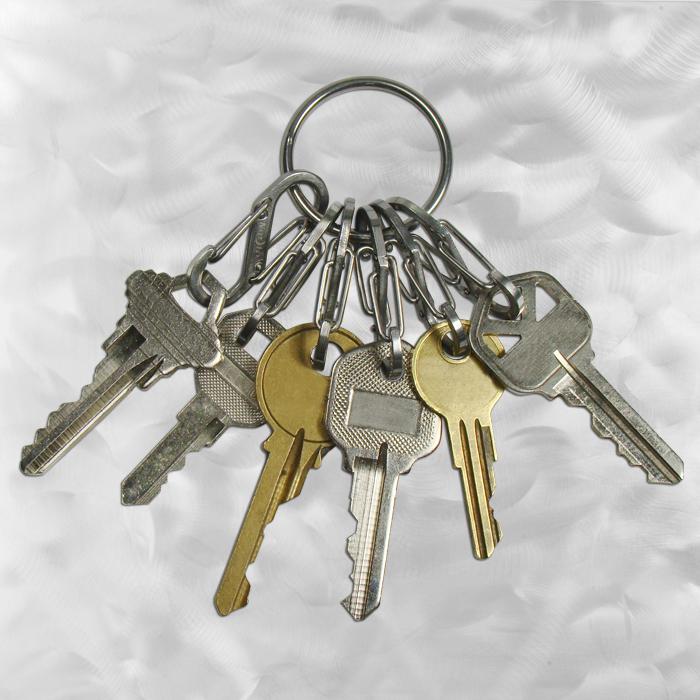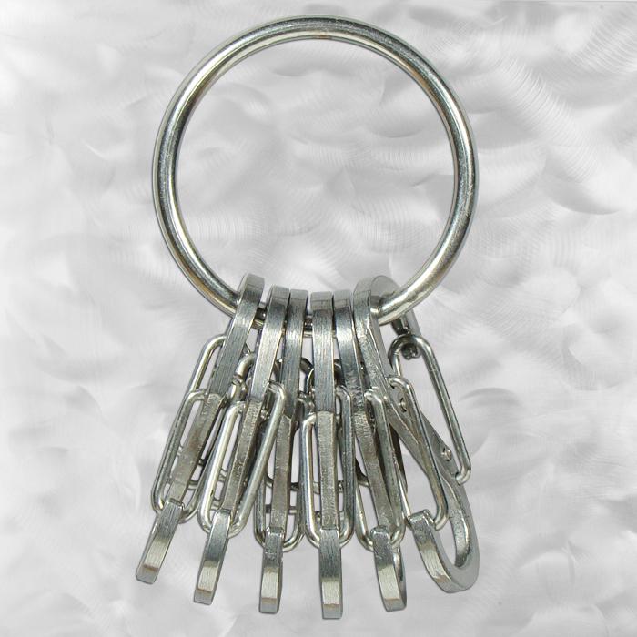 The KeyRing is a simple, handy, and secure way to organize and carry your keys. Its solid, continuous stainless steel ring comes with six #.5 stainless steel S-Biners that are perfectly sized to hold six separate keys, or use one to attach the whole unit to a second key ring, belt loop, purse strap, or zipper pull. The S-Biners remove and reattach quickly and securely, making it easy to share keys with family members, valets, babysitters, or for taking a single key with you when you're out for a run or ride. More S-Biners can be ordered separately; the KeyRing can hold plenty of them.